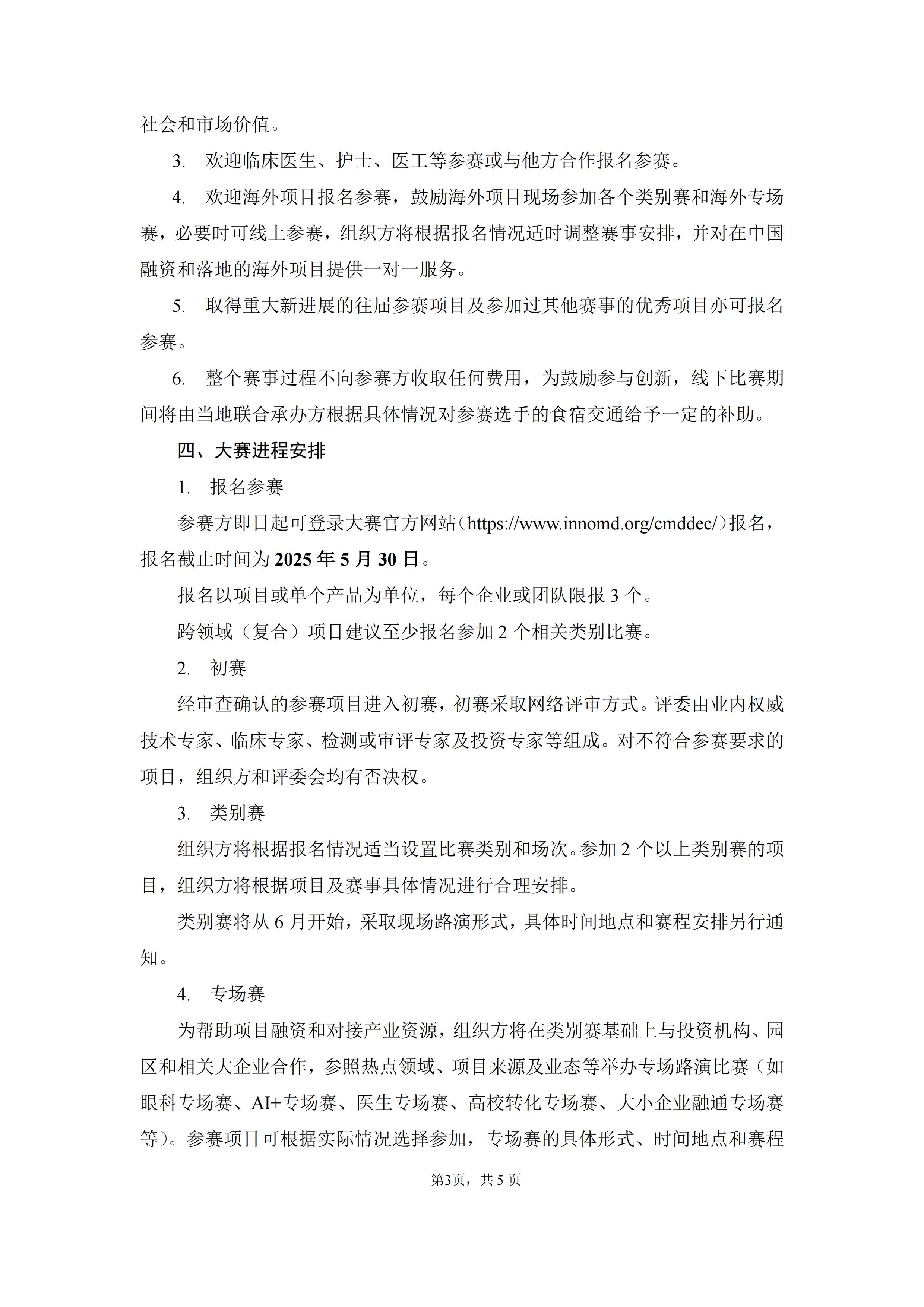 参赛方即日起可登录大赛官方网站(医疗器械创新网网://yncyyp.com/cmddec/)报名,报名截止时间为2025年5月30日。